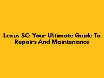 Lexus SC: Your Ultimate Guide To Repairs And Maintenance