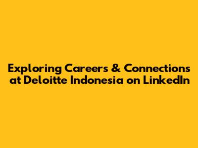 Hey everyone! Ever wondered what it's like to work at Deloitte Indonesia? Or maybe you're just curious about how to connect with professionals in your field? Well, you're in the right place! Today, we're diving deep into Deloitte Indonesia's presence on LinkedIn, exploring everything from job opportunities and company culture to networking tips and insider insights. LinkedIn is a goldmine when it comes to career exploration and professional development, and Deloitte Indonesia has a thriving presence there. Let's get started!