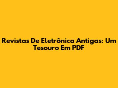 Revistas De Eletrônica Antigas: Um Tesouro Em PDF