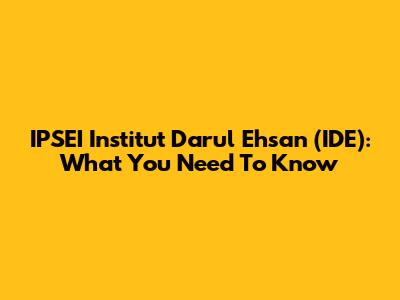 IPSEI Institut Darul Ehsan (IDE): What You Need To Know