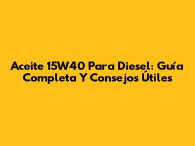 Aceite 15W40 Para Diesel: Guía Completa Y Consejos Útiles