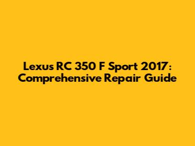 Lexus RC 350 F Sport 2017: Comprehensive Repair Guide
