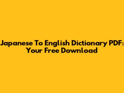 Japanese To English Dictionary PDF: Your Free Download