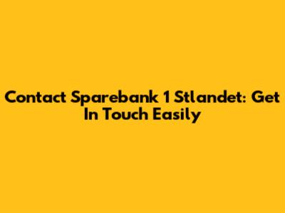 Contact Sparebank 1 Stlandet: Get In Touch Easily