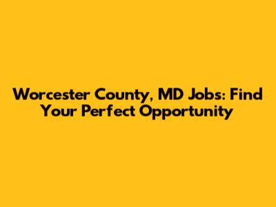 Worcester County, MD Jobs: Find Your Perfect Opportunity