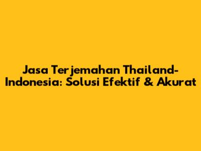 Jasa Terjemahan Thailand-Indonesia: Solusi Efektif & Akurat