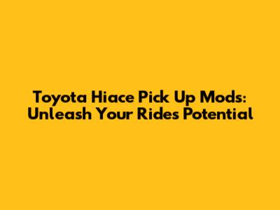 Toyota Hiace Pick Up Mods: Unleash Your Ride's Potential